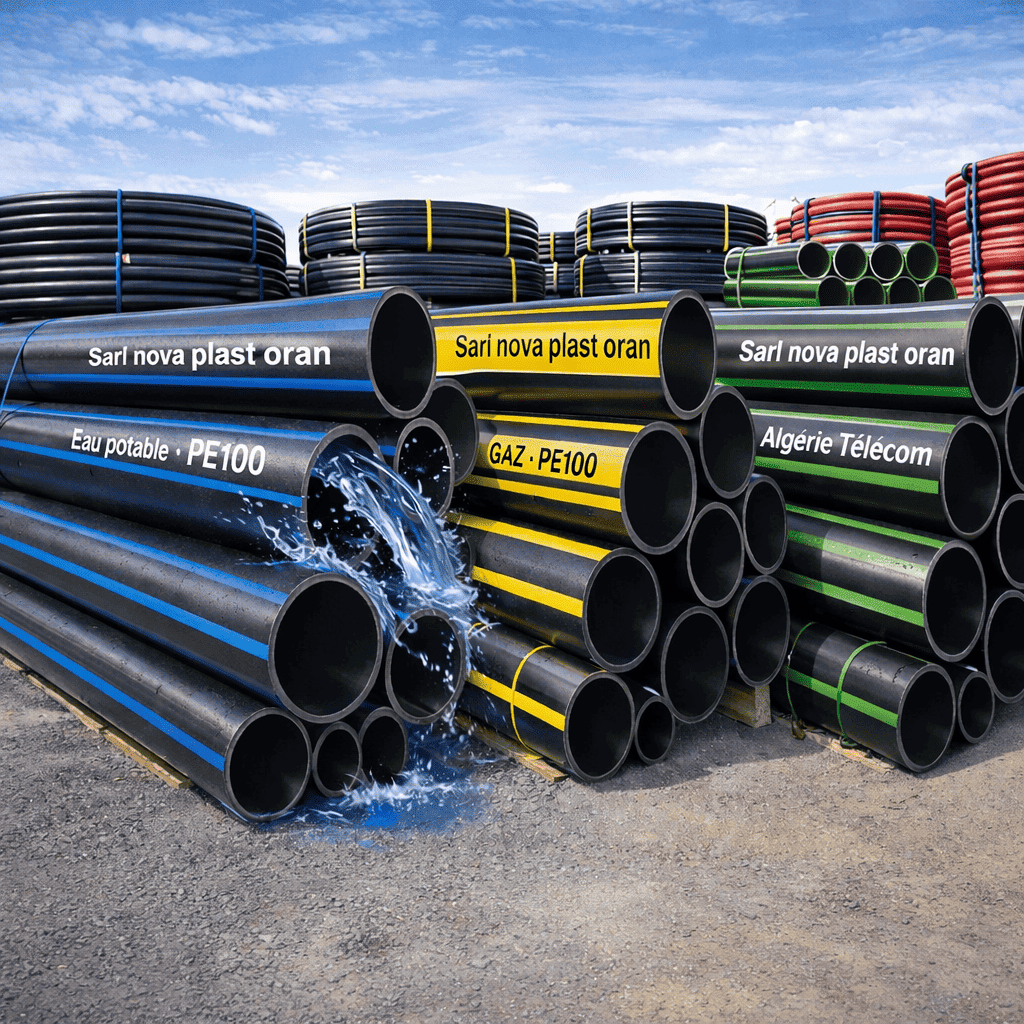 NOVAPLAST est une entreprise algérienne spécialisée dans la fabrication et la distribution de tuyaux et raccords en polyéthylène (PEHD/PEBD).